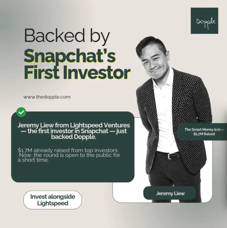 Jeremy Liew (first investor in Snapchat, Affirm, and The Honest Company) has invested in Dopple.